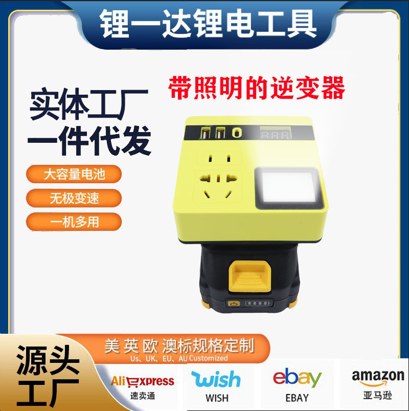 国境を越えた人気のリチウム電池スマートインバーター 18-21V 充電電源 AC220V/USB ソケット DC5VLED ライト