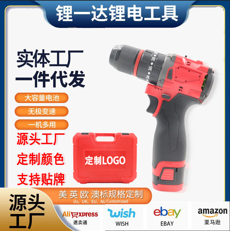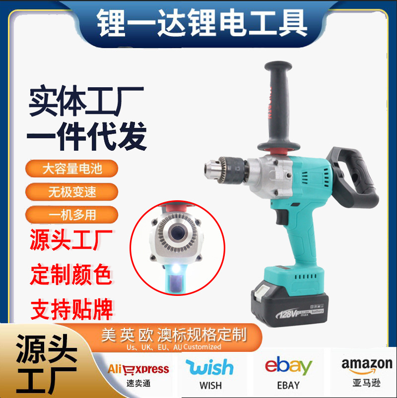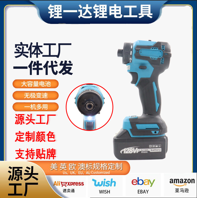 13MMリチウム電池クロスボーダー懐中電灯ドリル電動ドライバー電気ドリルセットブラシレス多機能充電インパクトドリル