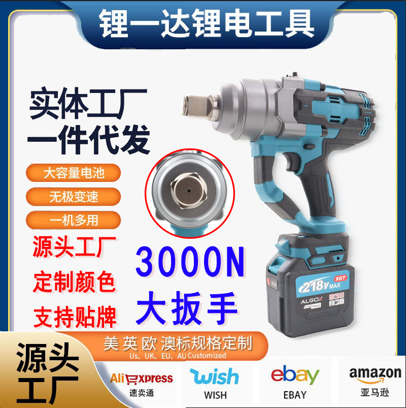 工業級リチウム電気3000N大トルク電動レンチソケットレール電気風砲インパクトレンチ工具自動車修理
