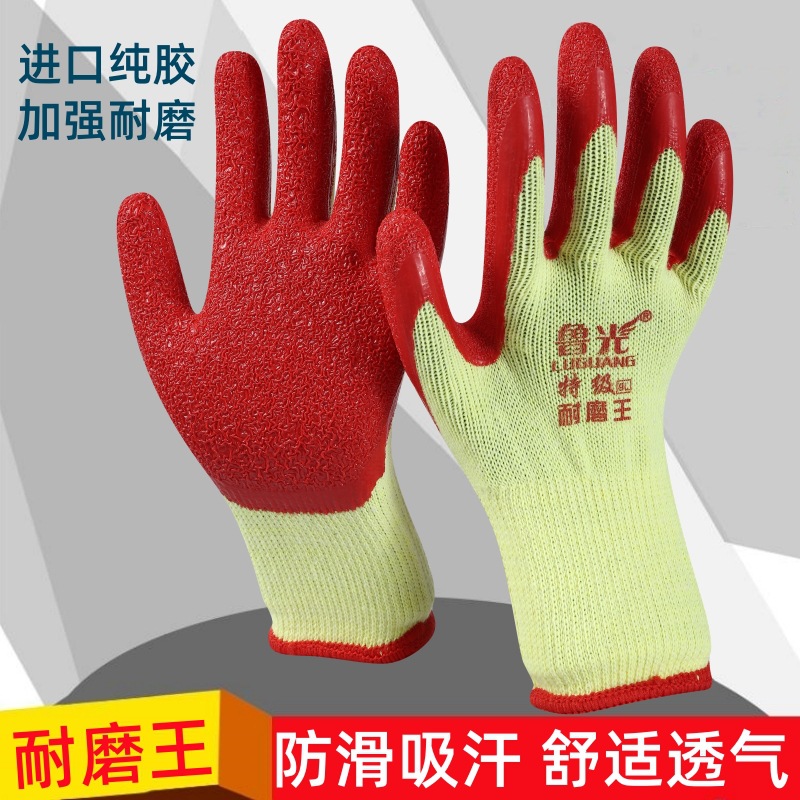 魯光魯助手耐磨耗純ゴム物理圧紋労働保護手袋ゴム工事現場の仕事手袋