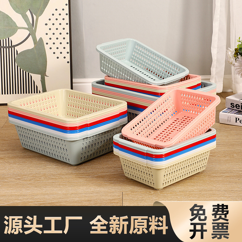プラスチックバスケットキッチン収納長方形家庭用果物と野菜の排水ブルースーパーマーケット配送ボックス野菜洗浄小箱