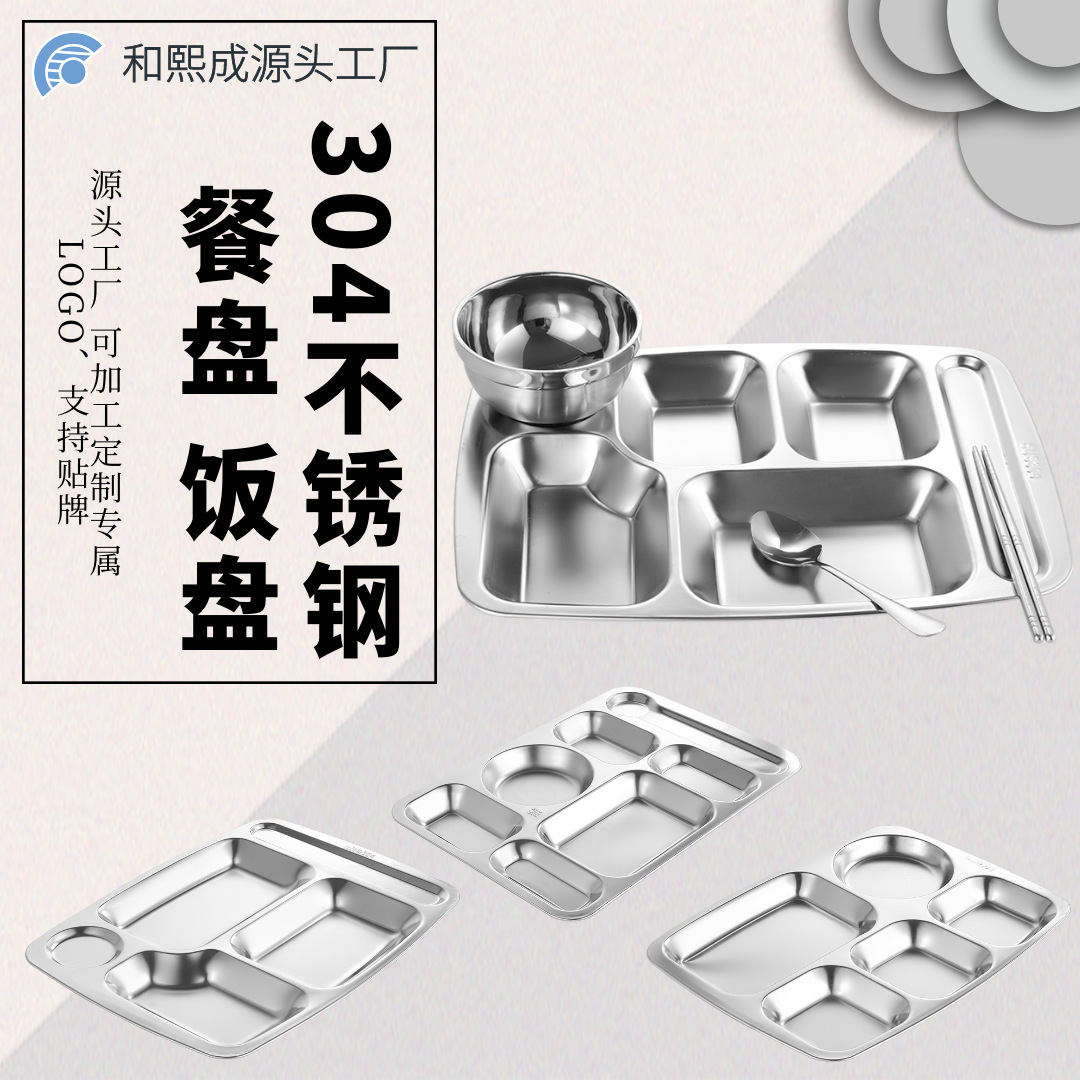 304 ステンレス鋼のディナープレート食器学校食堂レストランディナープレートコンパートメント肥厚ランチボックス学生コンパートメントディナープレート