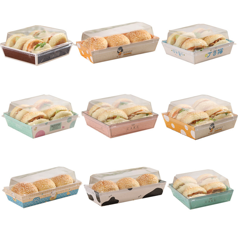 長方形透明紙プラスチックボックスタオルロール雪梅ニアンサンドイッチボックスミートフロスパンケーキエッグロールカニデザートケーキボックス