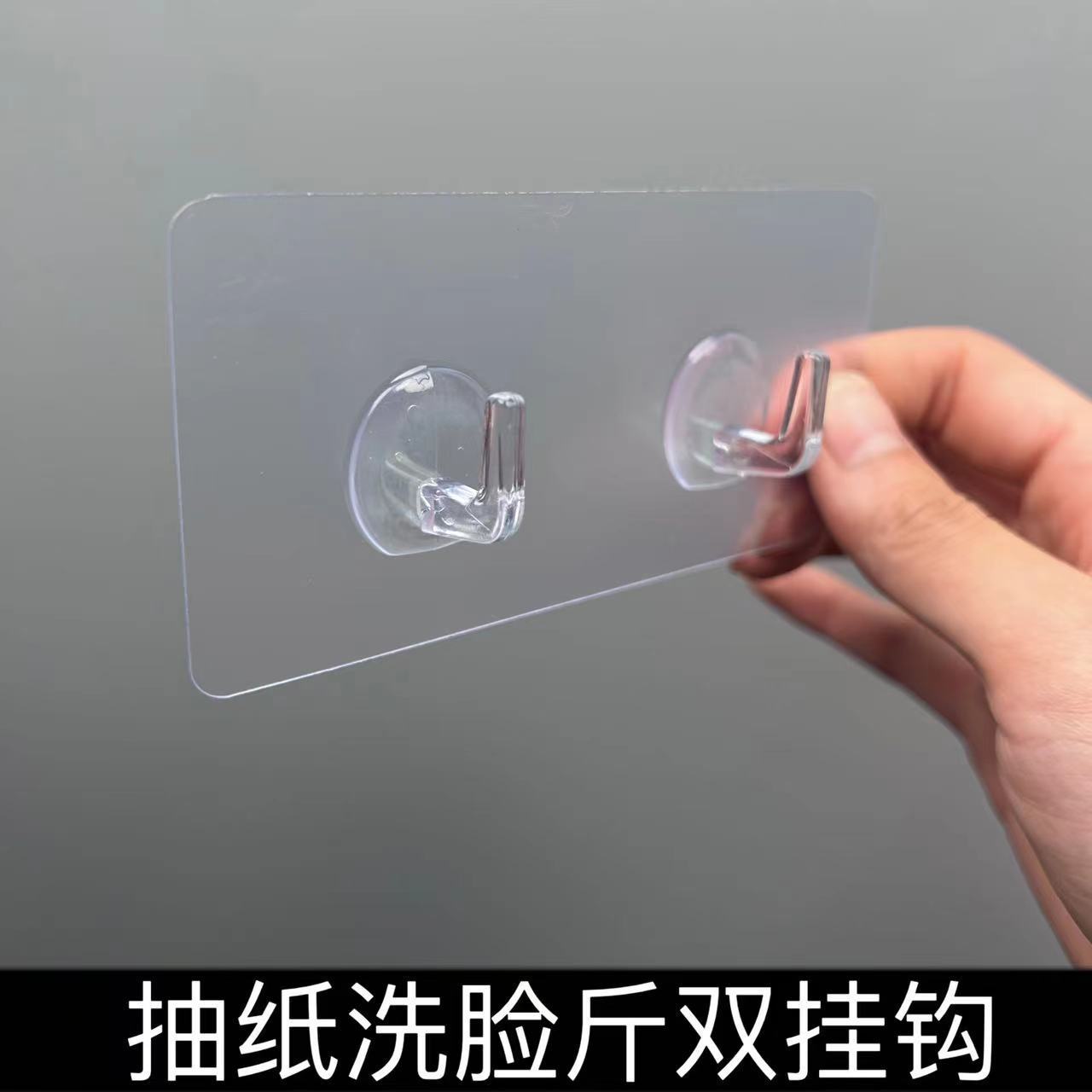 ティッシュペーパーフェイスタオルフックダブルフック強力なパンチフリーベルトフックティッシュペーパー衣類浴室透明ダブルフック卸売