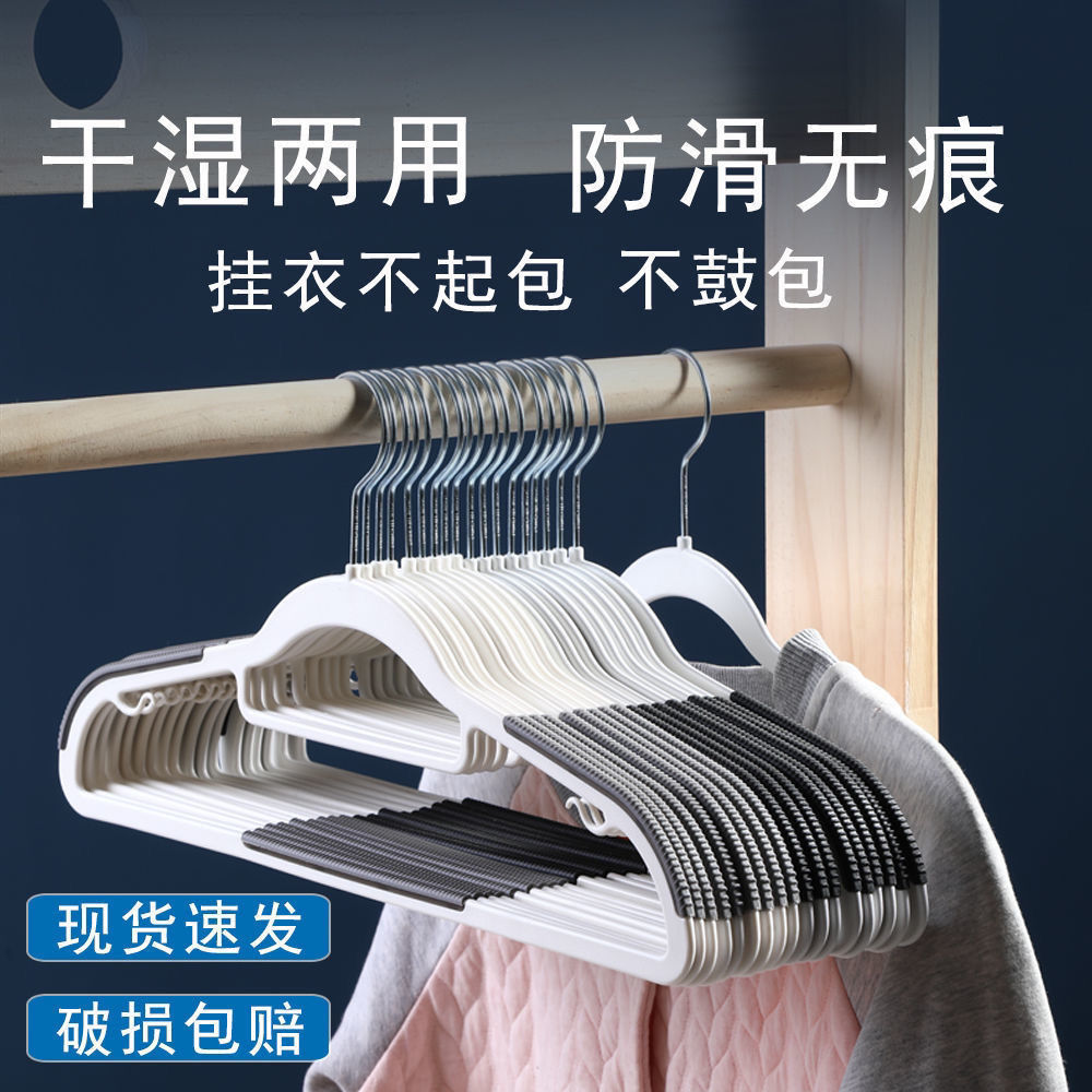 乾湿両用ダブル衣類ハンガー、滑り止め、厚みのある衣類ハンガー、厚みのあるシームレスな衣類ラック、整理と保管用のプラスチック製衣類サポート