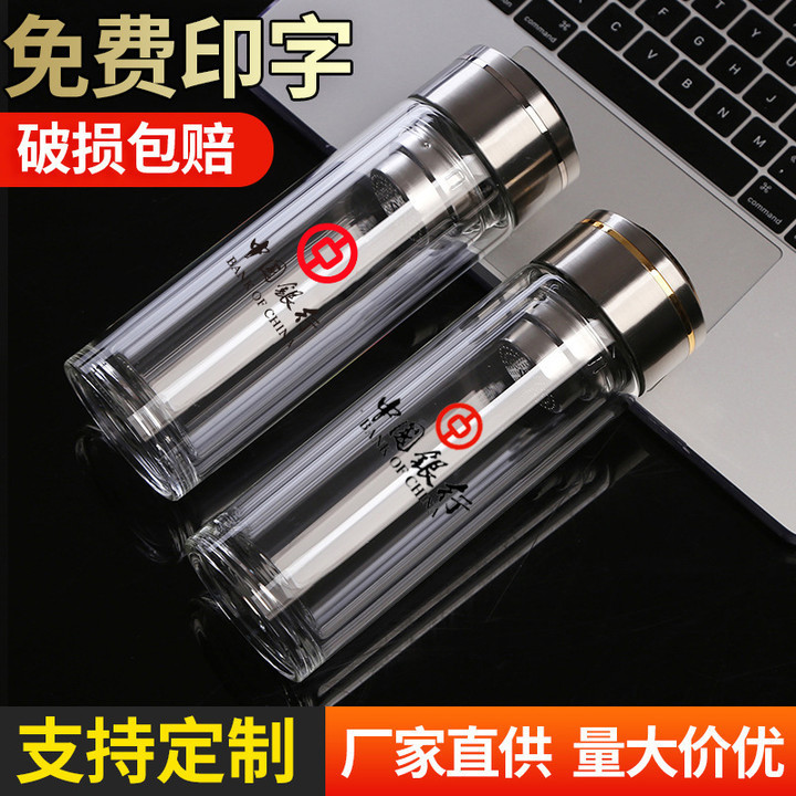 双层玻璃杯定 制印创意简约透明杯子商务双层烧底水杯茶水杯