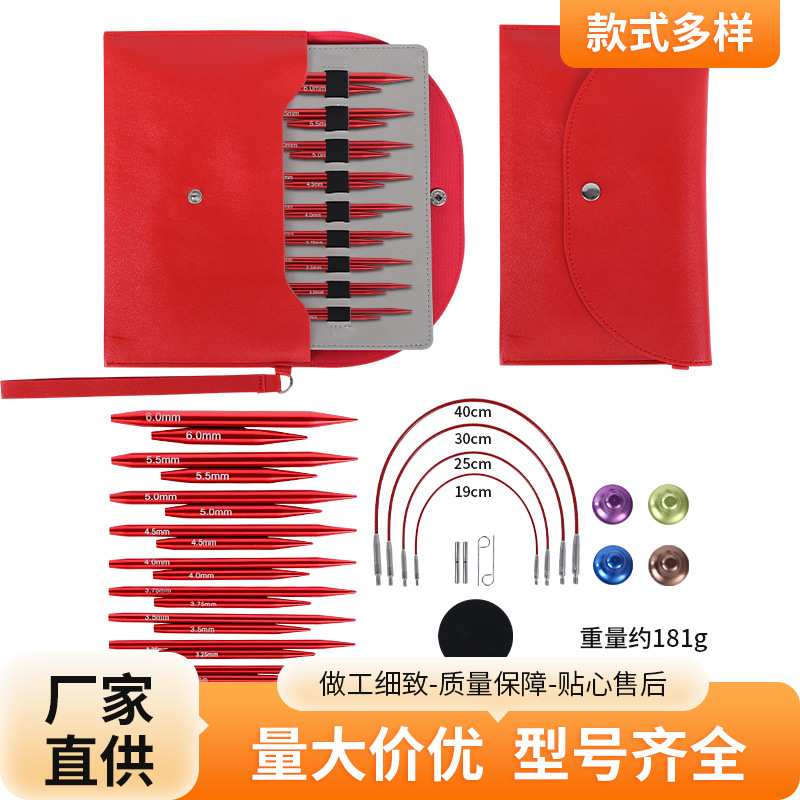 クロスボーダー取り外し可能な編み針、酸化アルミニウム5+8ロング編み針、9本の丸針セット、赤い袖針