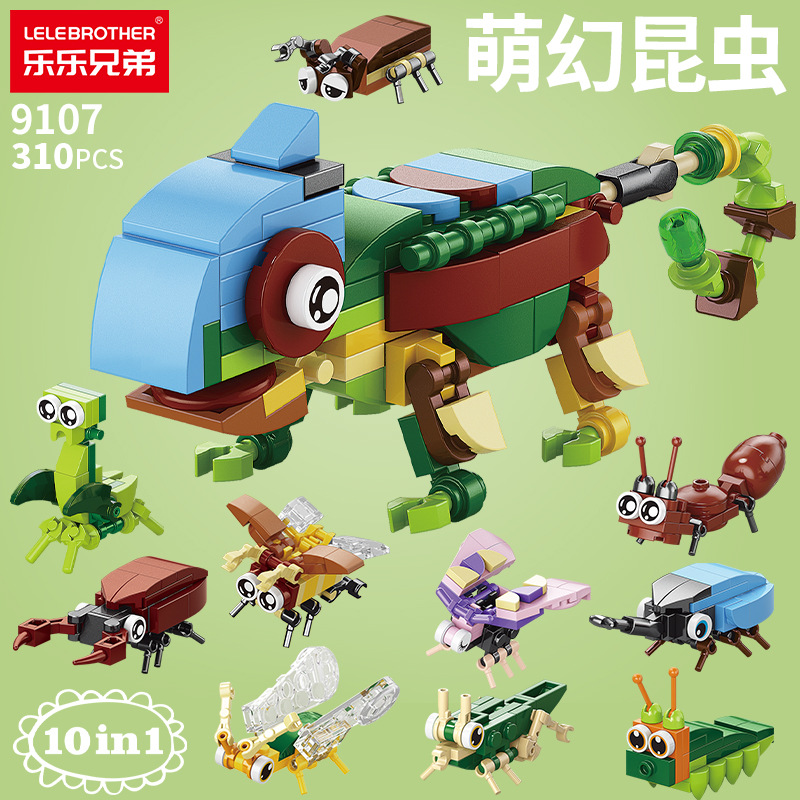 楽楽兄弟積み木子供パズルトカゲ昆虫模型玩具互換レゴ少年パズルプレゼント