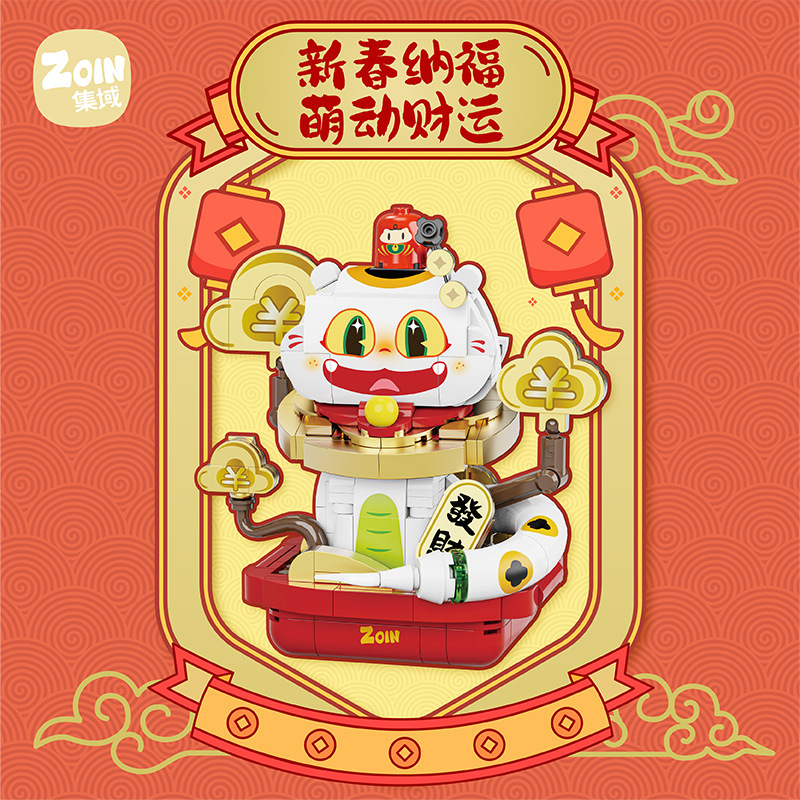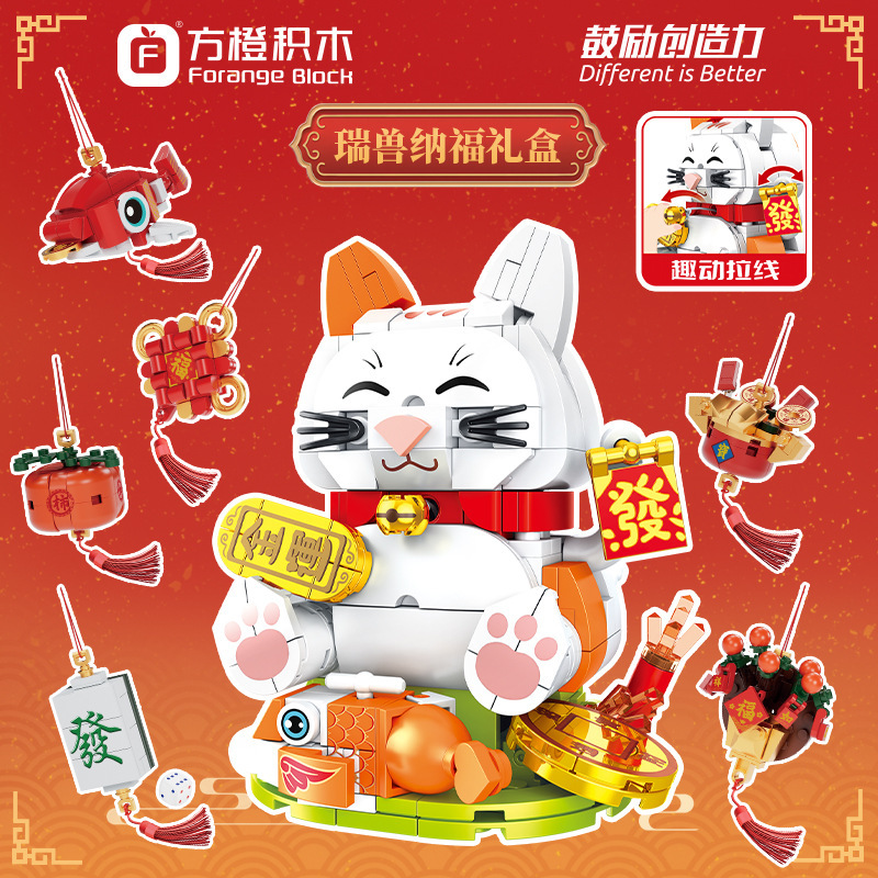 方橙積み木子供益知力玩具互換レゴ招き猫瑞獣納福ギフトボックス