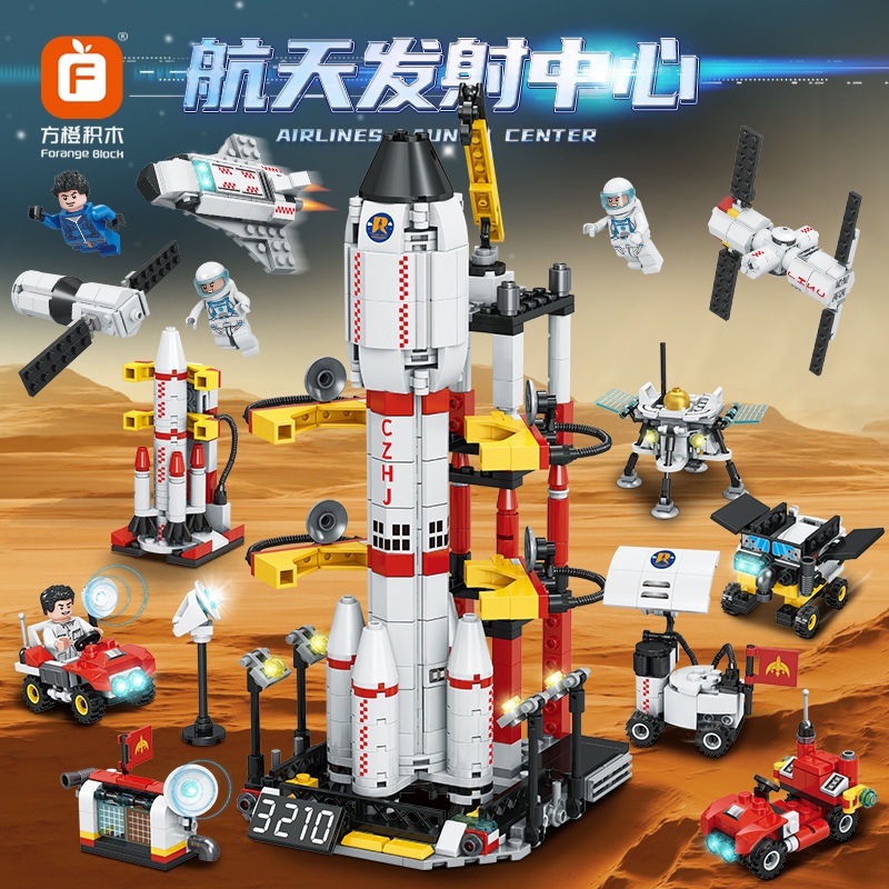 方橙の積み木の子供は知育宇宙ロケットの発射センターの模型の男の子のパズルを詰めてレゴのおもちゃと互換性があります。