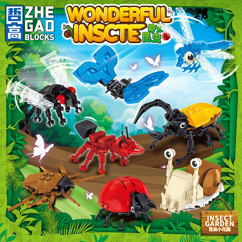 哲高の積み木はレゴの昆虫の動物の組み合わせの模型の子供の益智のおもちゃの男の子のトンボのジグソーパズルの贈り物と互換性があります。
