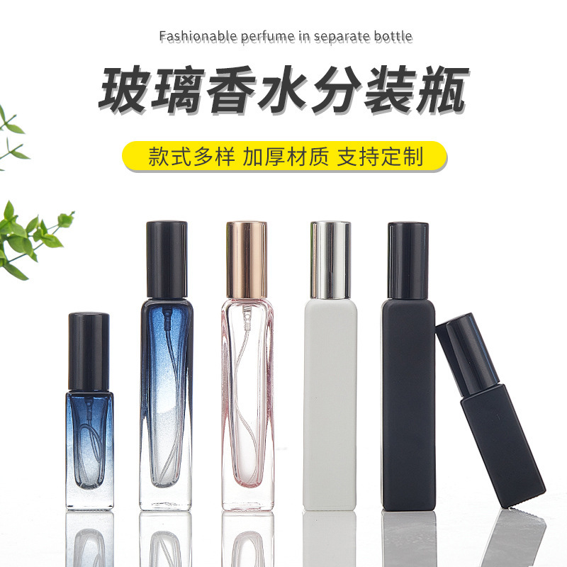 角型透明プッシュ式円形黒色スプレーボトル多規格10mlグラデーションガラス香水瓶分注瓶