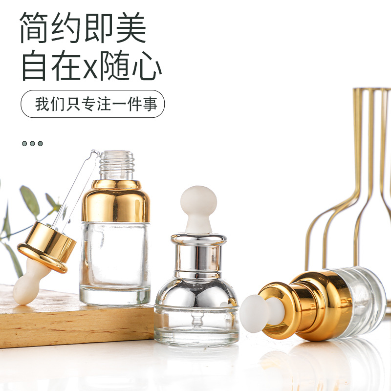 卸売透明エッセンシャルオイルスポイトボトルガラス空ボトルプラスチックヘッドエッセンシャルオイル原液分注ボトル20ml 30ml