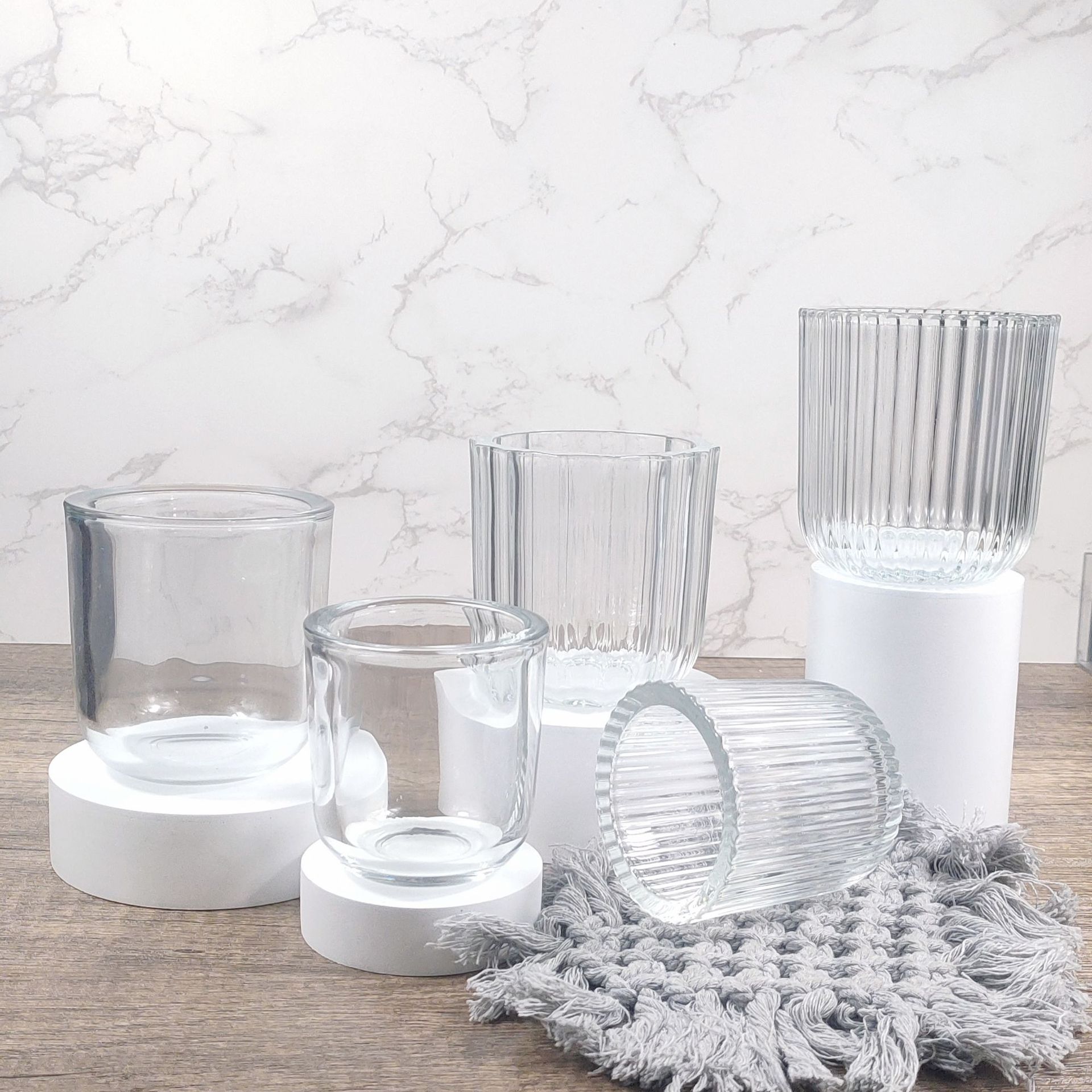 ヨーロッパ風の厚い壁の透明なグラスのアロマキャンドルの杯の拡香の容器の弧の底のストライプの杯の燭台の杯の空の杯