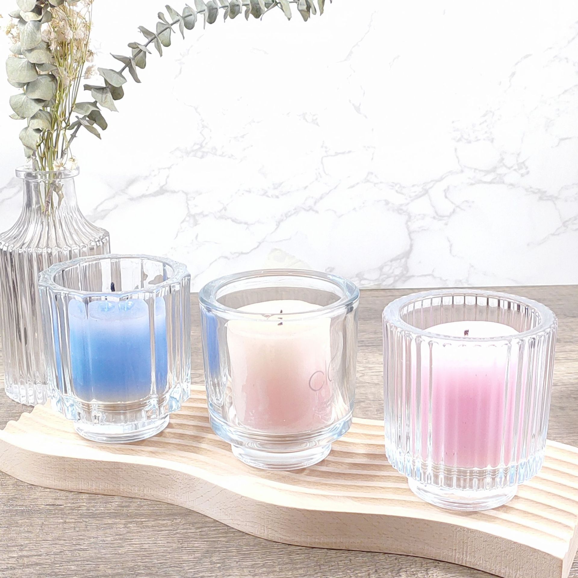 透明アロマキャンドルのグラス楕円の細いストライプを厚くして、高温に耐える燭台の置物を厚くして、アロマグラスを厚くします。