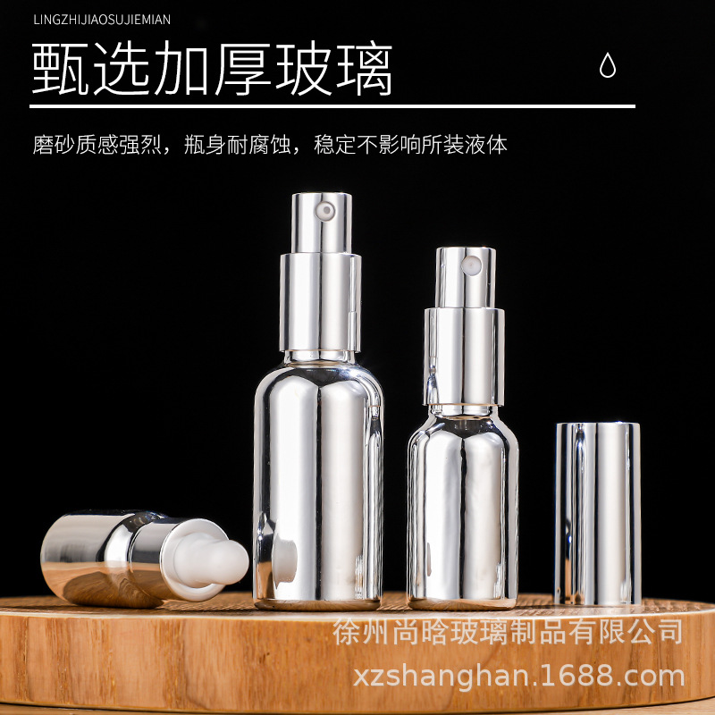 現物銀メッキ色スポイト精油瓶化粧品分注ガラス瓶押しスプレー瓶香水空瓶乳液