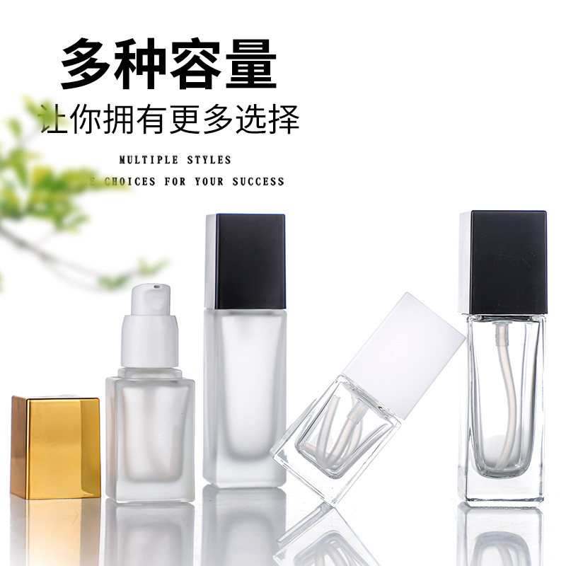 スポット30ml角型ファンデーションボトルローションポンププレスエッセンスガラスbbクリームアイソレーションクリーム化粧品分注ボトル