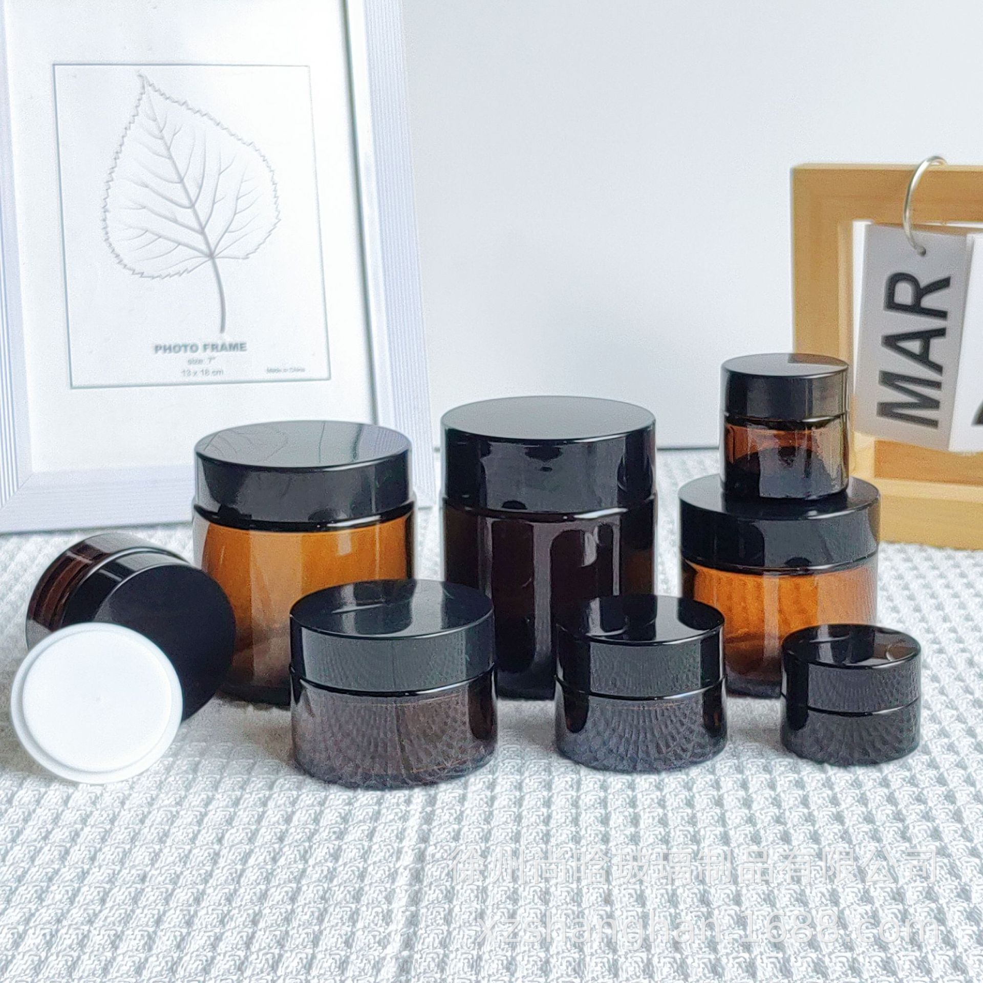 茶色のクリーム缶5gアイクリームサンプル空瓶化粧品ガラス分注ケース30g茶色広口クリーム瓶