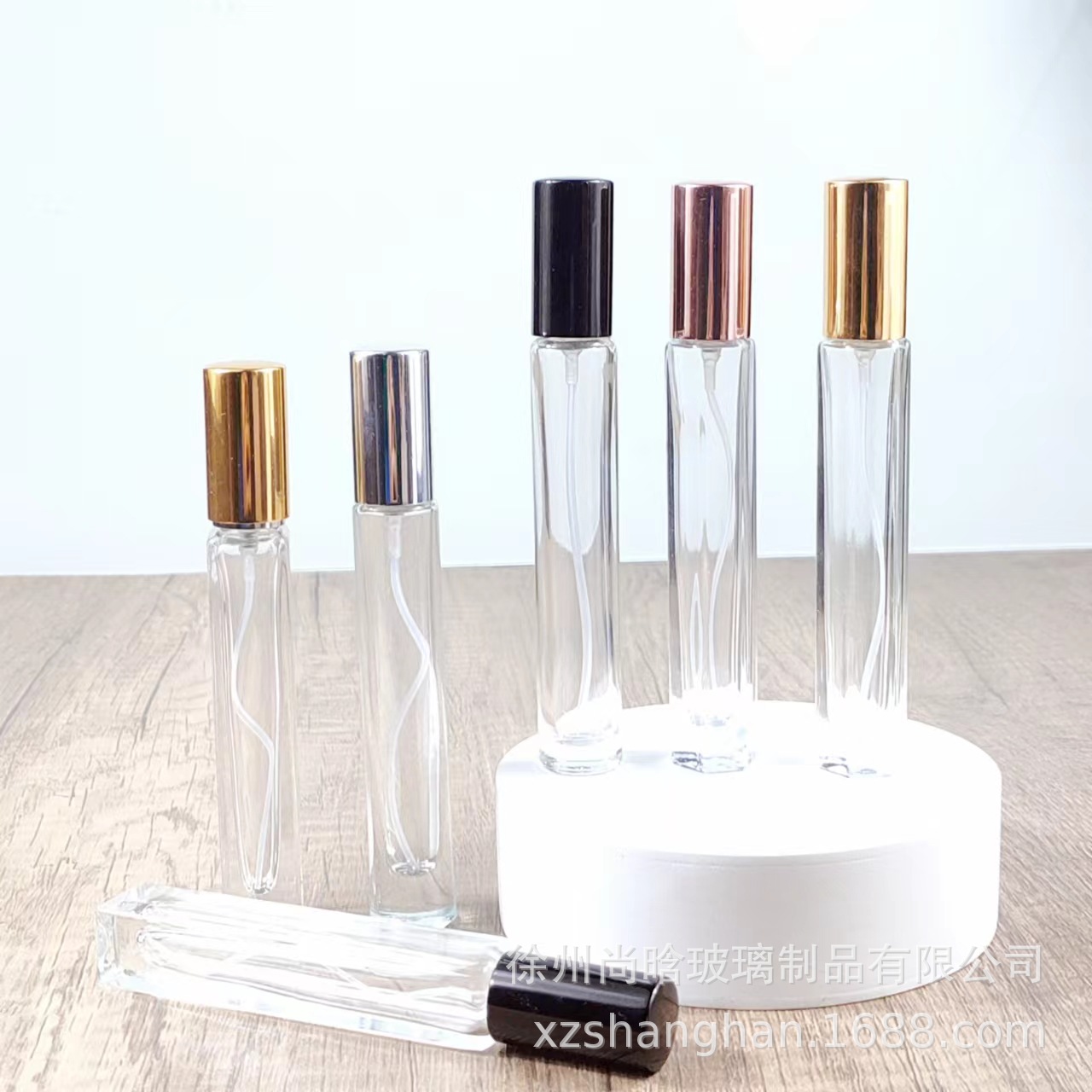 10ml円形スプレー香水瓶透明ネジ口サンプル分注瓶細長い厚い底角型ガラス空瓶包装