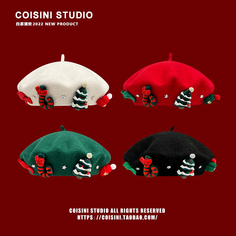 日本の甘いクリスマスの要素の赤いウールの尼のベレー帽の子供の冬の保温の百合の学生の画家の帽子の潮
