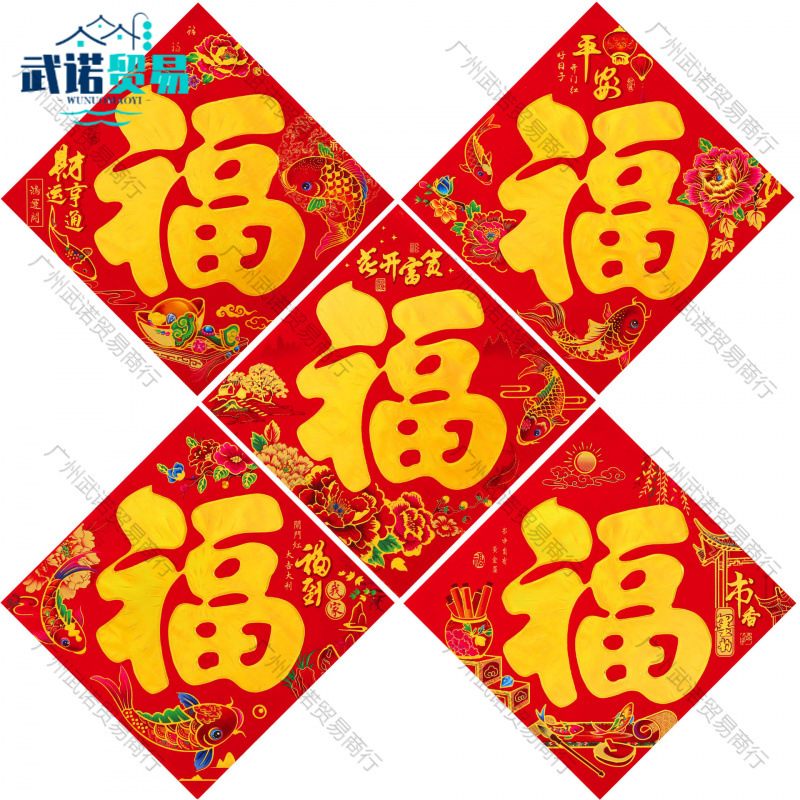 2025旧正月の新型は箔押し銅版紙平面福字大門福字貼り黒字金字福字ドア貼りである