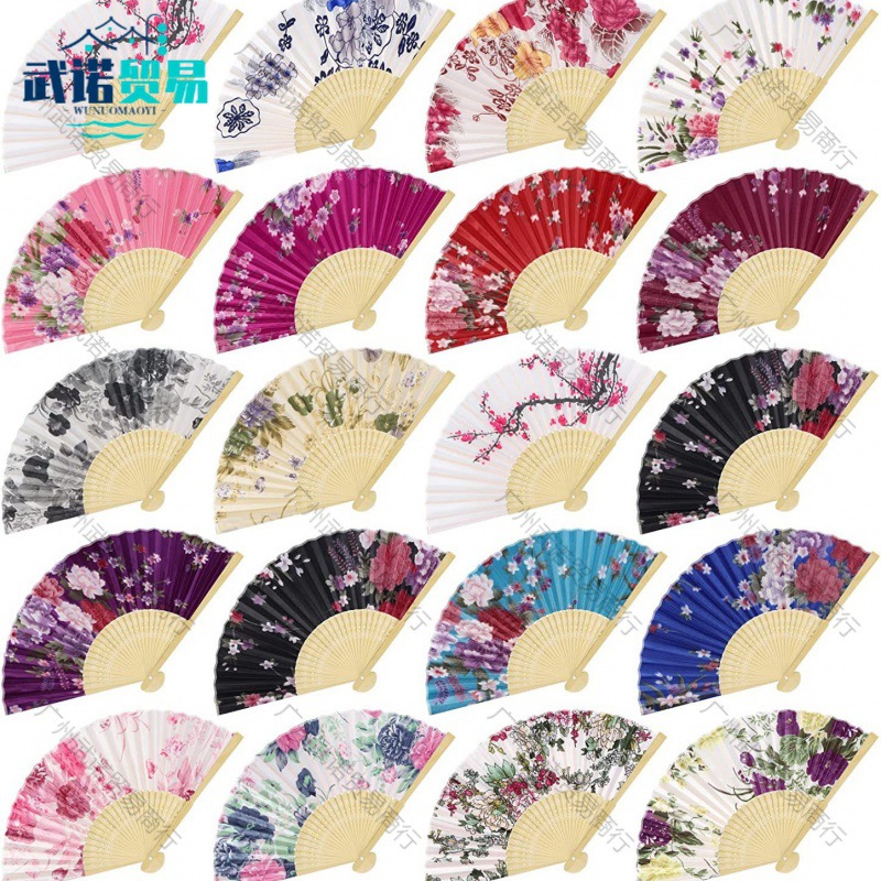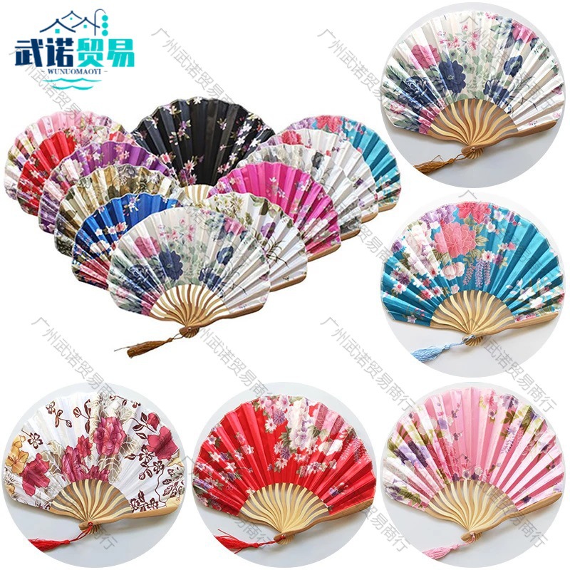 プリント扇子和風布面混布扇風機和風ギフト扇風機女性絹扇