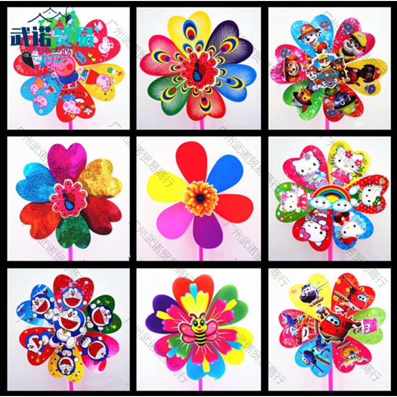 漫画地押し小プレゼント小風車児童玩具幼稚園には七彩風車が飾られている