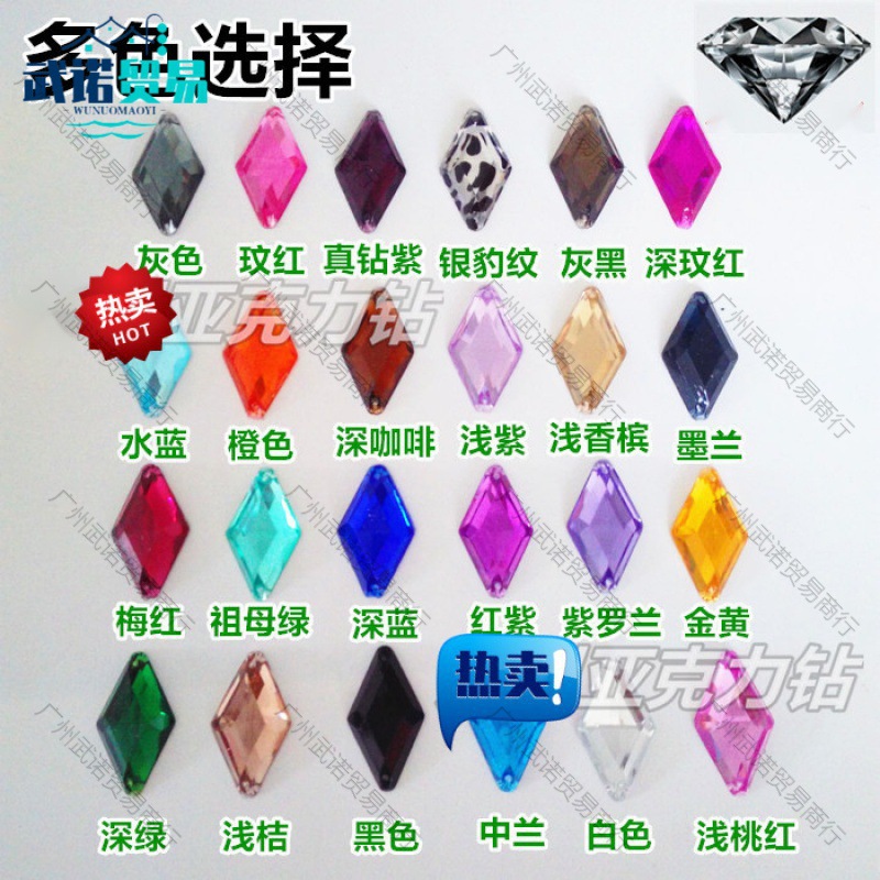 アクリル多色菱形ドリル補助材料部品14*24mm角形手縫いドリルdiyアクセサリー装飾材料