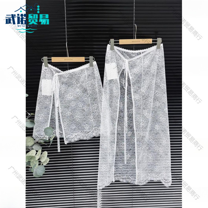 韓国レースワンピースオーバースカート、シースルーレースガーゼスカート、雰囲気のあるバットカーテン、レイヤードミドル丈スカート