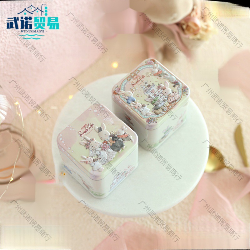 鉄の箱の喜糖の箱のオリジナルのウサギの立体は小さい正方形の箱の喜糖の箱のアイデアの鉄の箱を浮かべます。