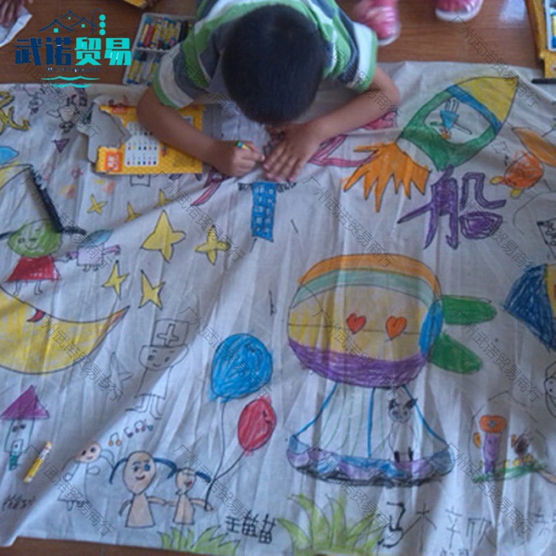白い布の落書きのキャンバスのポリエステルの綿の100メートルの長い絵巻の布地の子供の捺染の中国風の白い白地の布地は厚くなります。