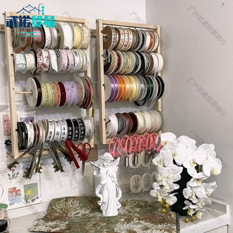 リボン棚花屋実木壁掛けリボン棚花屋収納棚リボンリール棚手作り収納棚