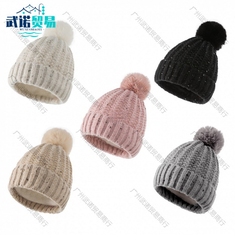 2022欧米の冬の新型ニット帽の純色の女性にベルベットの形のアクリル保温包頭毛糸帽