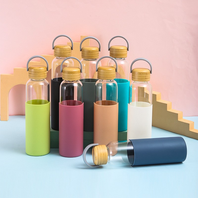 竹蓋杯シリコンカバー断熱高ホウ素シリコンガラスコップ対外貿易創意ハンドルカップ卸売りメーカー