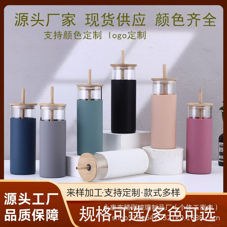 高ホウ素シリコン耐高温断熱皮カバーグラスコーヒーカップガラスストローカップins風高颜値竹祭りカップ