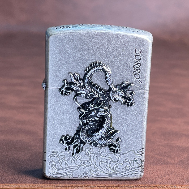 メーカー直送】正規品ゾロZ91851B古銀ロールアップステッカー章童龍黄銅灯油ライター卸