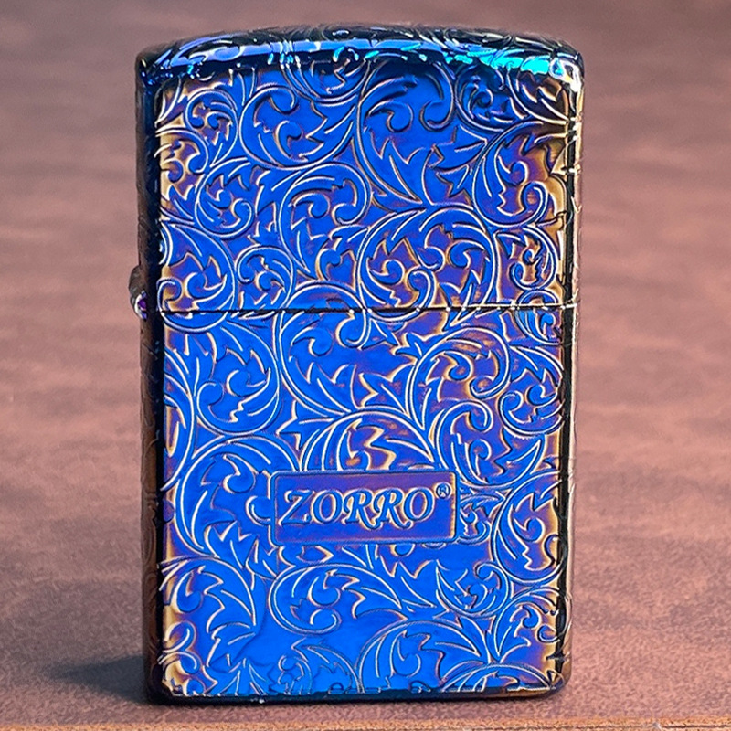 【メーカー直送】正規品ゾロZ902薫藍藍唐草精彫両面真鍮灯油ライター卸