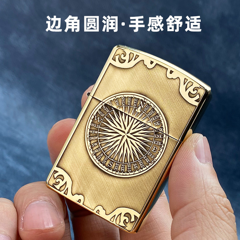 真鍮コンパス灯油ライター両面精彫レトロ防風メーカー卸売りプレゼント