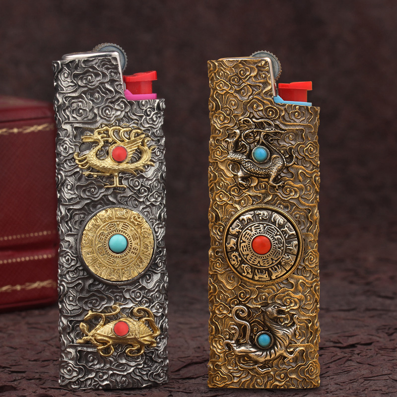 正品エナメル夜光神龍金メッキ銀メッキケース使い捨てビックj3ライターカバーメーカー卸売り