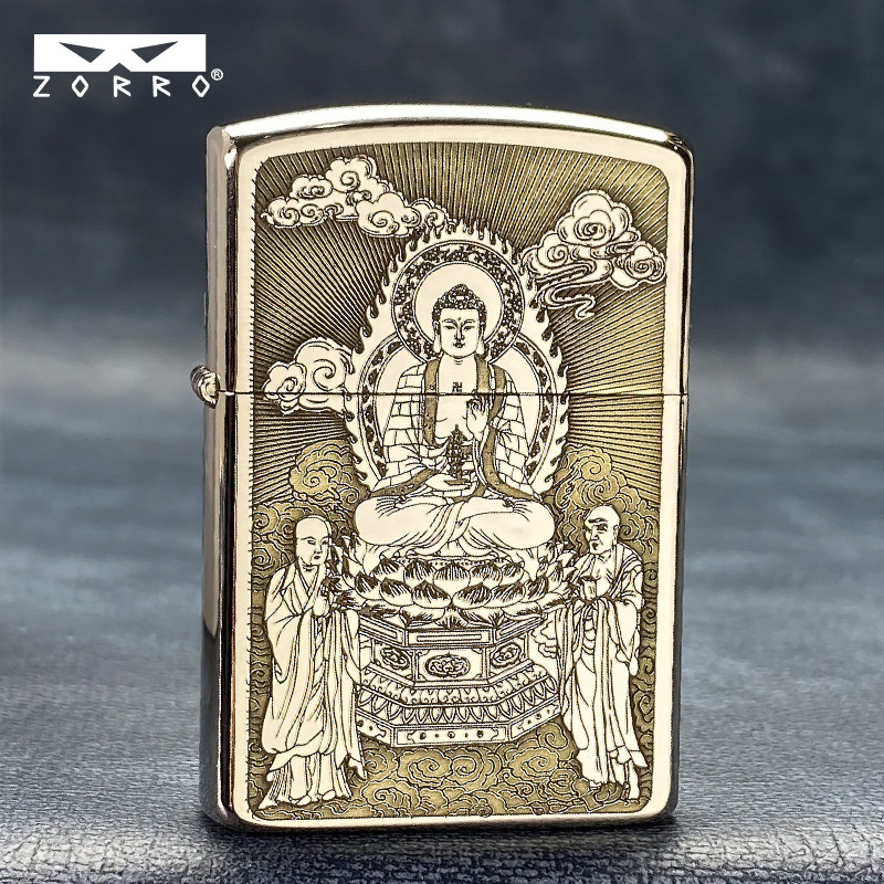 ゾロ二世代機Z2-1096Aニッケル2色仏主両面精彫真鍮灯油ライターメーカー卸売り
