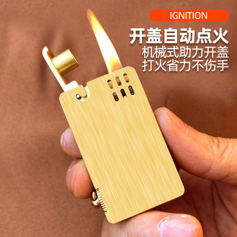 ゾロzorro超薄灯油ライター黄銅創意個性防風耐久性レトロ旧式砥石zs5