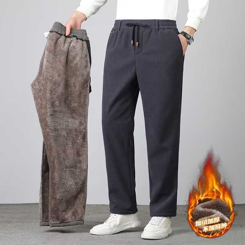 冬の超厚羊のベルベットのズボンの男性は、カジュアルなズボンを厚くして、襟の綿のズボンを開けて、中高年のズボンを温める