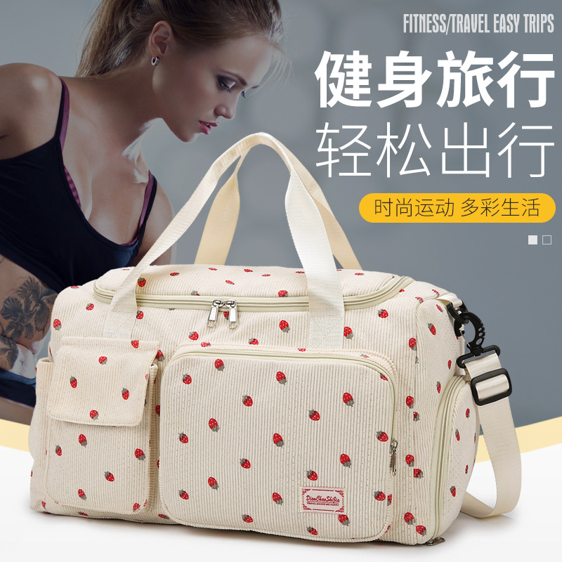 国境を越えた新しいいちごコーデュロイ旅行バッグ大容量軽量フィットネスバッグ