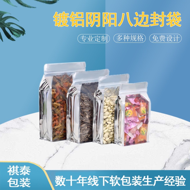 アルミメッキ陰陽八辺シール袋、高透明、食品グレードの防湿袋、ビスケット/ドライフルーツの葉用ユニバーサル
