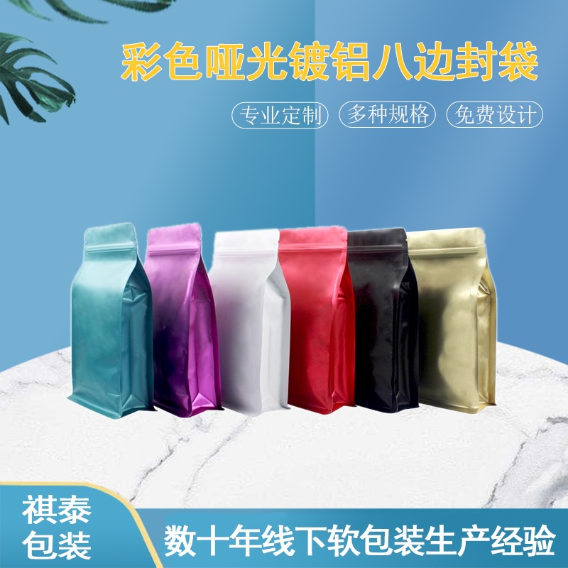 防湿鮮度保持カラーマットアルミメッキ8面シールセルフシールスナック包装ティーバッグ実用的な食品袋