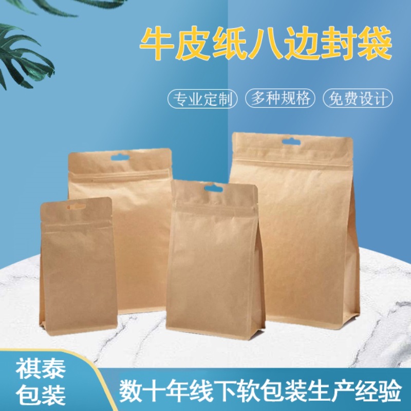 祺泰現物クラフト紙自立自封袋ナッツ密封袋アルミ錫紙茶葉八辺封包装袋