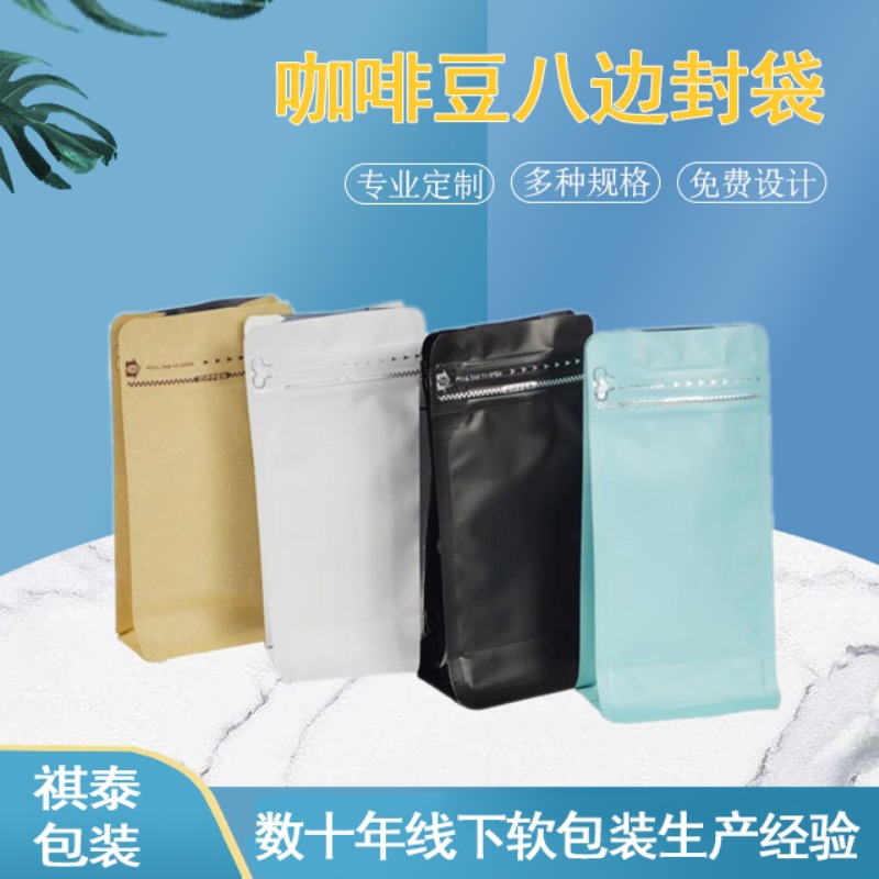 祺泰一ポンドコーヒー豆圧条包装袋八辺封アルミ箔自立袋空気弁袋コーヒー包装袋
