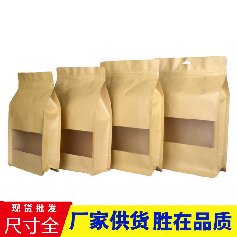 フロスト窓クラフト紙袋自立自封袋八辺封袋チャック袋食品包装袋密封袋