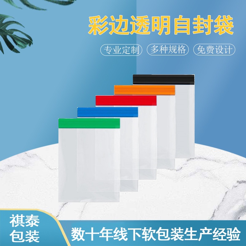 カラーエッジPEプラスチック自封袋透明厚手食品専用密封袋収納分注包装袋