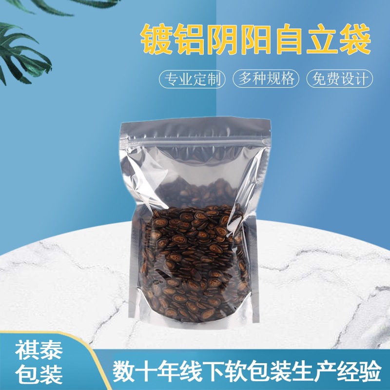 アルミメッキ陰陽アルミ箔袋自立自封袋茶葉乾果包装袋半透明プラスチック密封袋100個